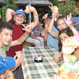 A szokásosnak mondható ítéletidő megkímélt bennünket, így nyugodtan elindulhattunk esti körutunkra. Fagyizással kezdtünk, majd meglátogattuk a fajátszit, a Sörházdomb kilátót, ahol a gravitáció törvényeivel ismerkedtek néhányan pár falevél és fűcsomó röptetésével (bár a panorámára is igyekeztünk felhívni a figyelmet...:). Este 10 után mindenki hazatért, hogy kipihenje a nap fáradalmait.